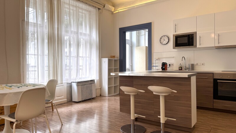 Belvárosi pezsgés – mégis csendes, belső udvarra néző lakás.