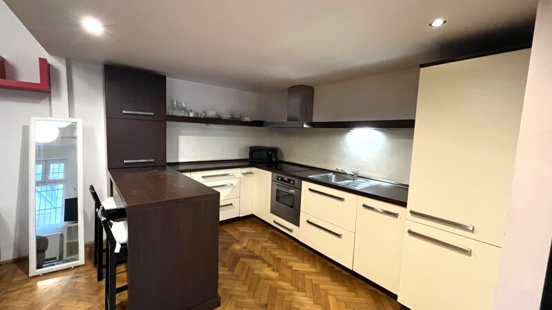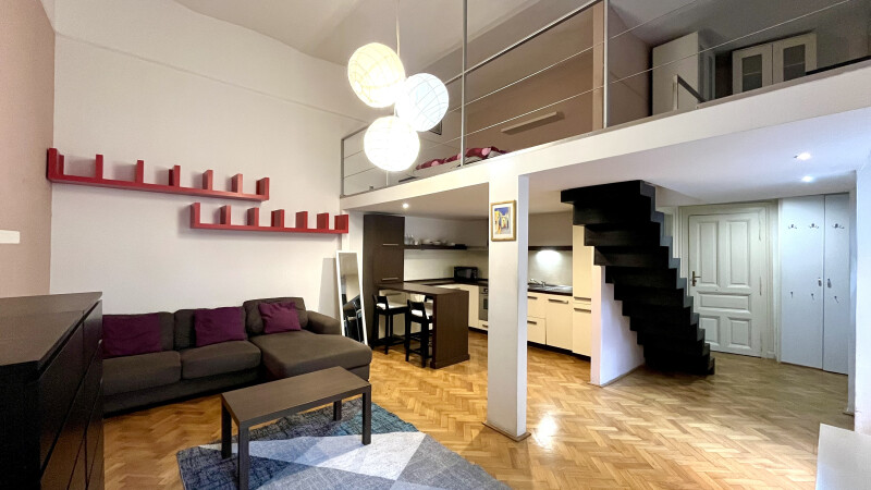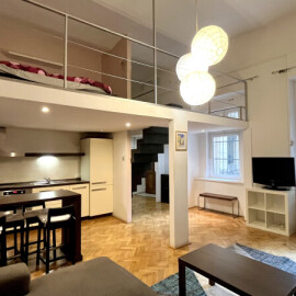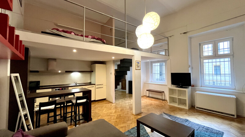 Belvárosi, galériás, modern lakás kiváló közlekedéssel – ideális fiatal pároknak vagy egyedülállóknak, akár kisállattal is.