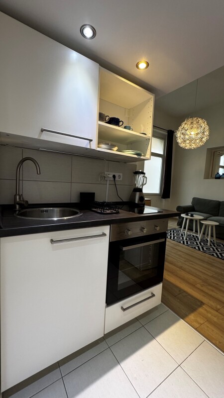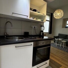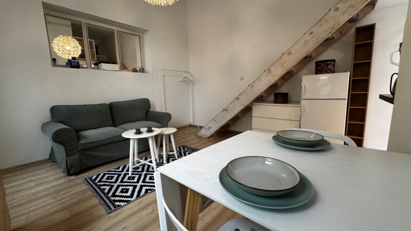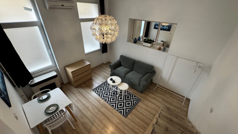 Az ingatlan részét képezi az amerikai konyhás nappali (sütő-főzőlap, mikró, hűtő), kényelmes kanapéval, galéria, valamint zuhanyzós fürdőszoba (mosógép).