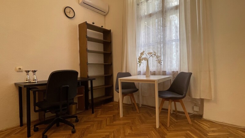 A lakás kiváló elhelyezkedésű, közvetlenül a Fővám tér közelében található, ahol minden elérhető pár perc sétával: a Vásárcsarnok, egyetemek (Corvinus, ELTE), kávézók, éttermek, boltok és a Duna-part.